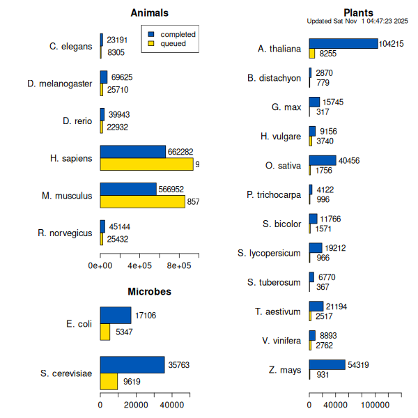 Digital Expression Explorer 2 (DEE2) is a repository of uniformly processed RNA-seq data mined from public data obtained from NCBI Sequence Read Archive.